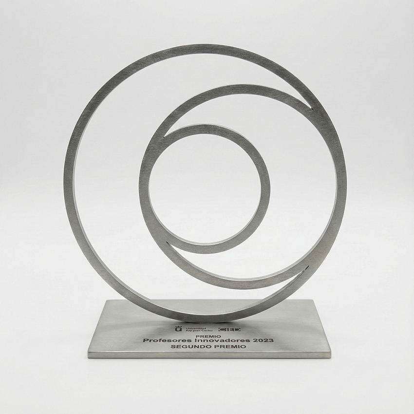 Creamos premios metalizados con acabados en oro, plata, cobre, efectos oxidados o patinados; ideales para transmitir solidez y prestigio y durabilidad.