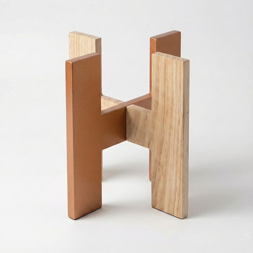 – Formas geométricas solas o combinadas con bases de madera o resina.
